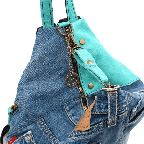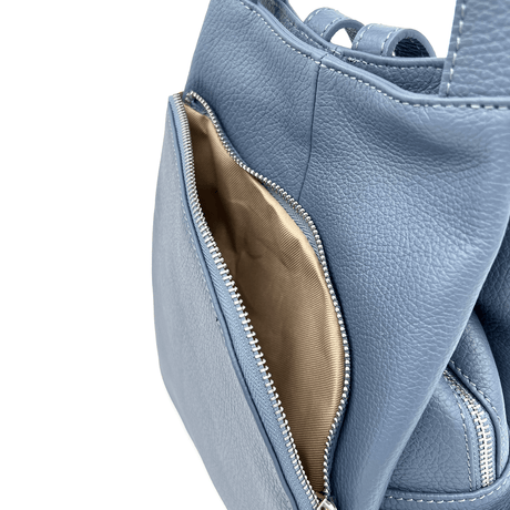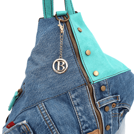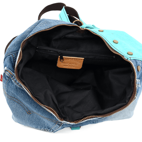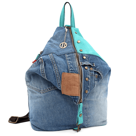 Nagy természetes bőr és farmer Gabriela hátizsák - világoskék