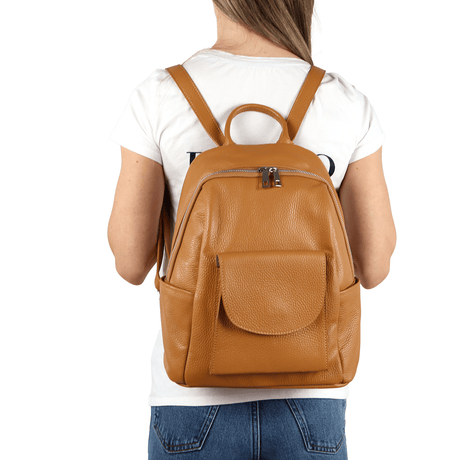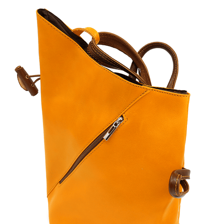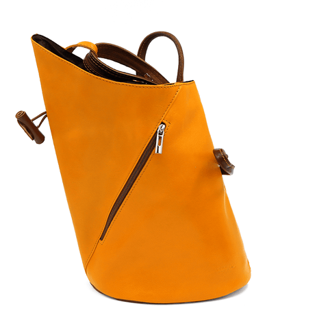 Női hátizsák természetes bőrből, titkos záródással - mustársárga