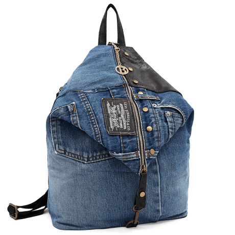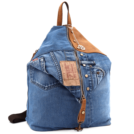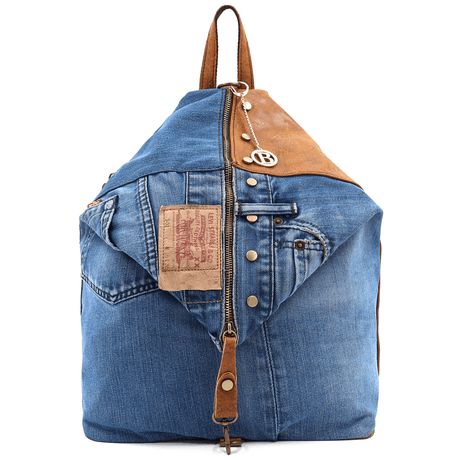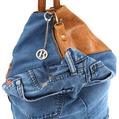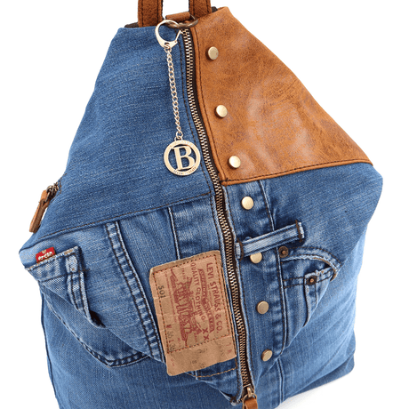Nagy hátizsák természetes bőrből és farmerből Gabriela - cseréptetős barna