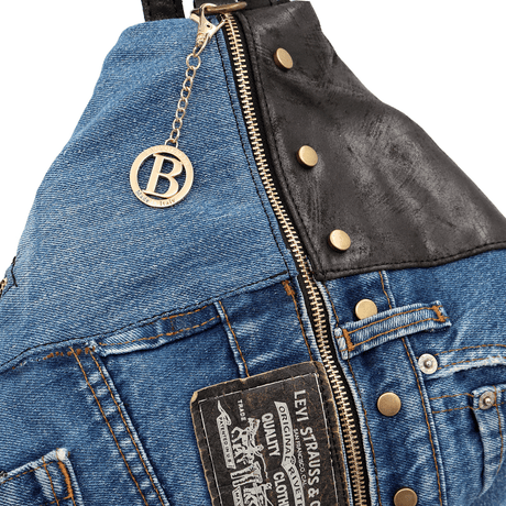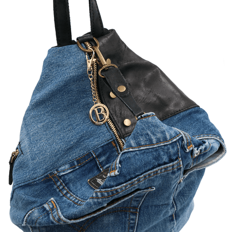Nagy természetes bőr és farmer táska Gabriela - fekete