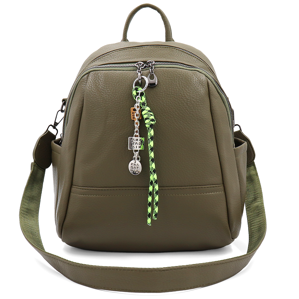 2 az 1-ben – Hátizsák és táska két nagy rekesszel és kulcstartóval – zöld
