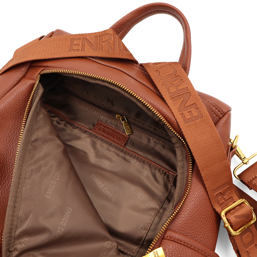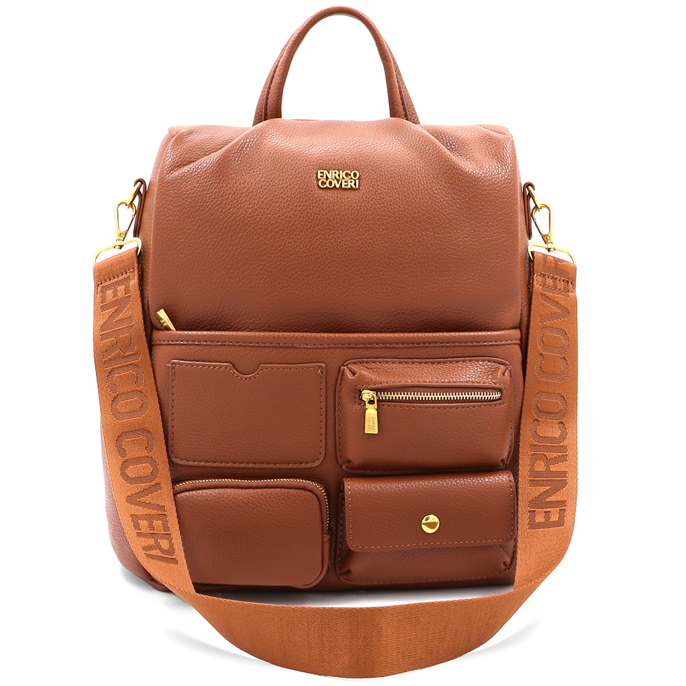 ENRICO COVERI – 2 az 1-ben női hátizsák és táska, titkos záródással és sok zsebbel – téglabarna
