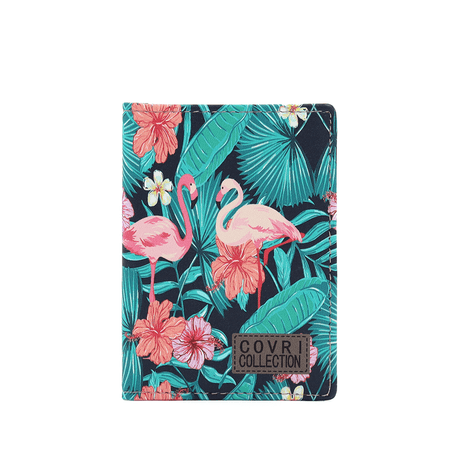 Kártyatartó flamingó mintával - sötétzöld