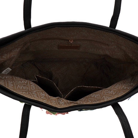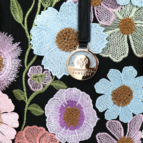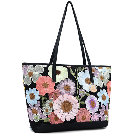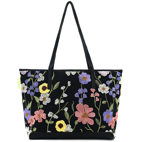 Nagy női táska típusú táska hímzett virágmintával – fekete