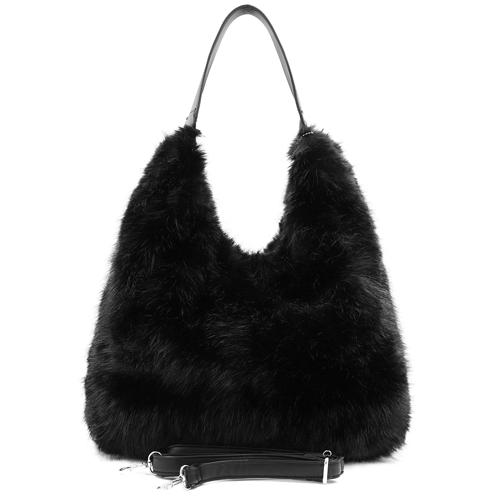 Nagy női táska típusú táska plüssből – fekete