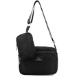 Női válltáska szövetből, lógó pénztárcával - fekete