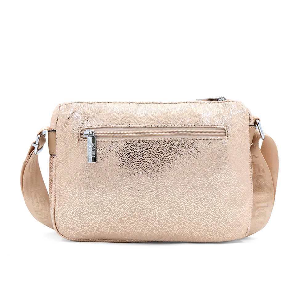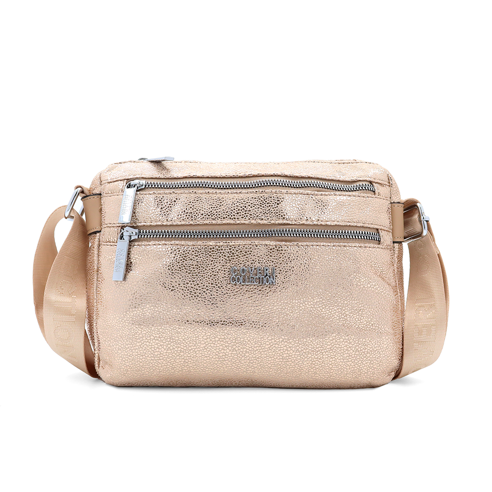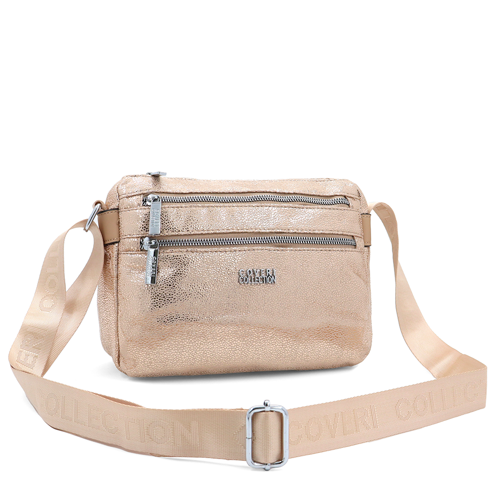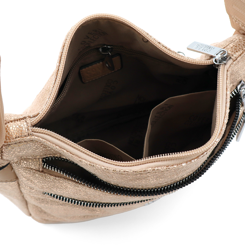 Vállra akasztható női táska metál hatással – világosbarna