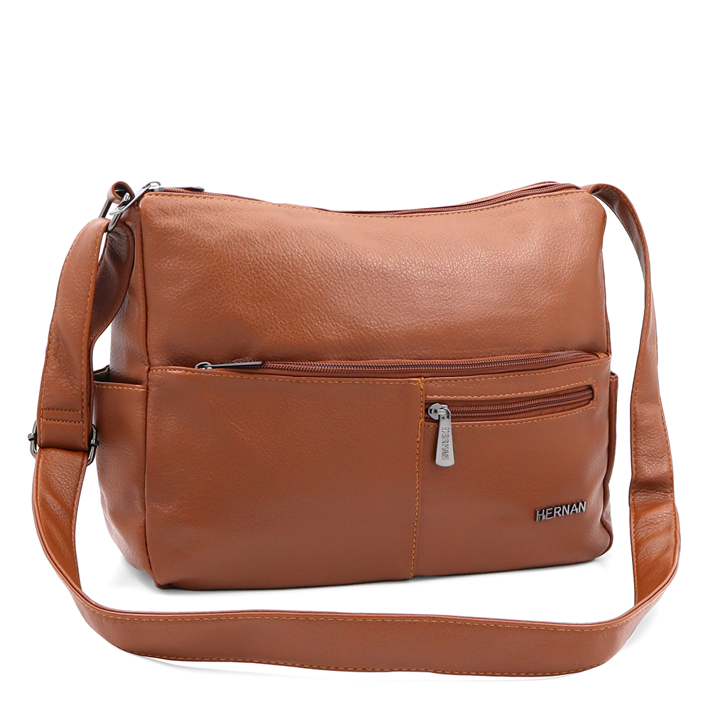 Válltáska 2 rekesszel és sok zsebbel - téglabarna