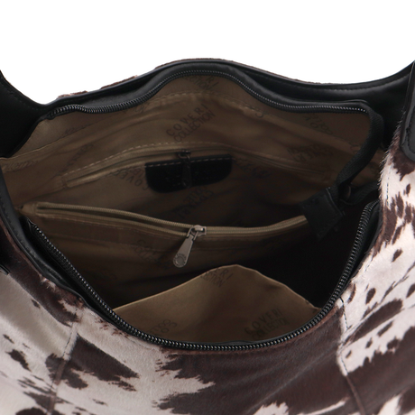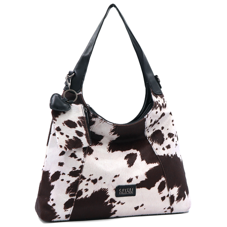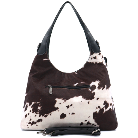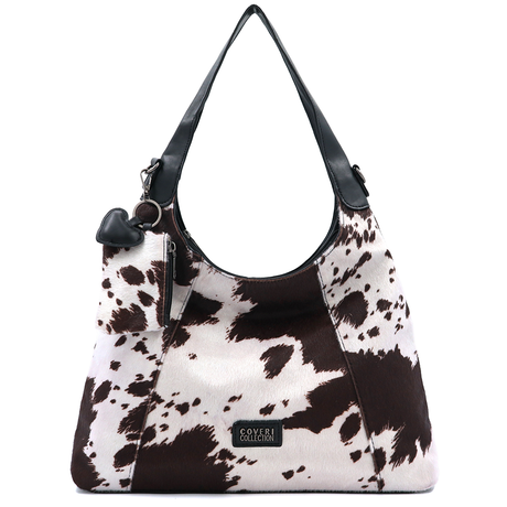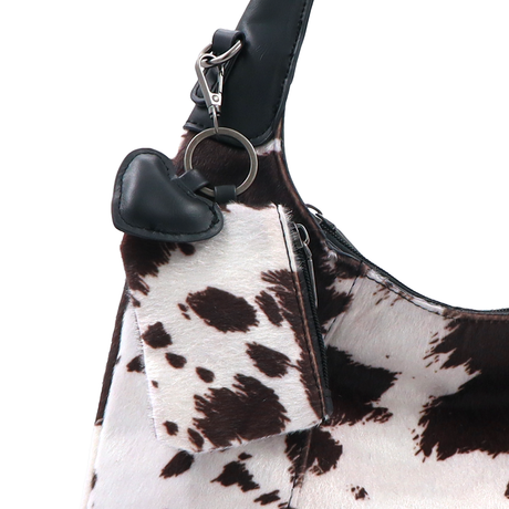 Női táska típusú táska tehénmintás dizájnnal és lógó pénztárcával – fekete