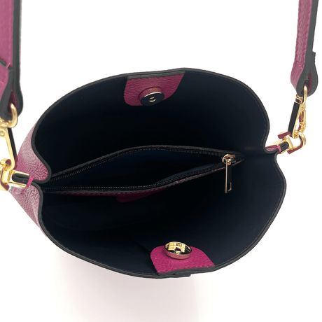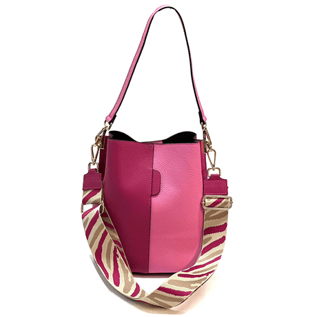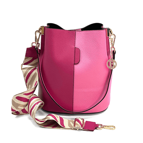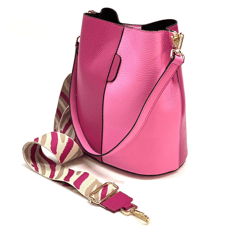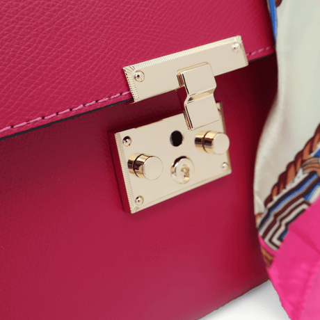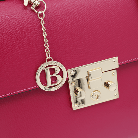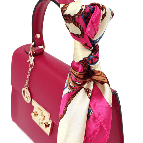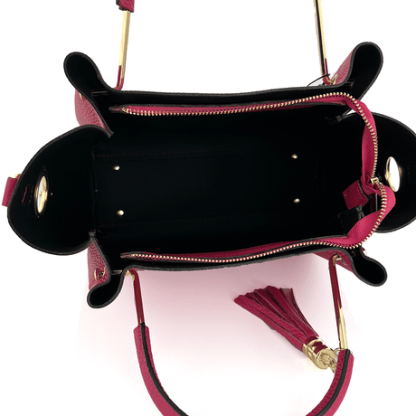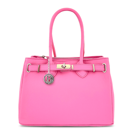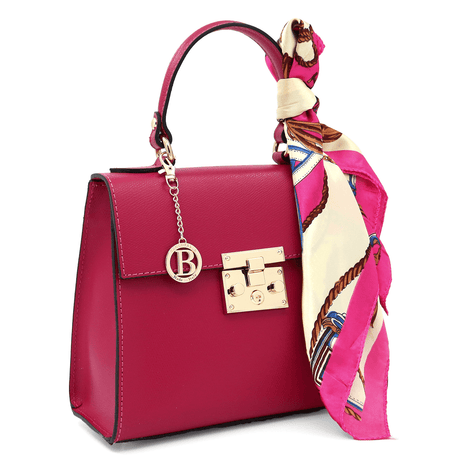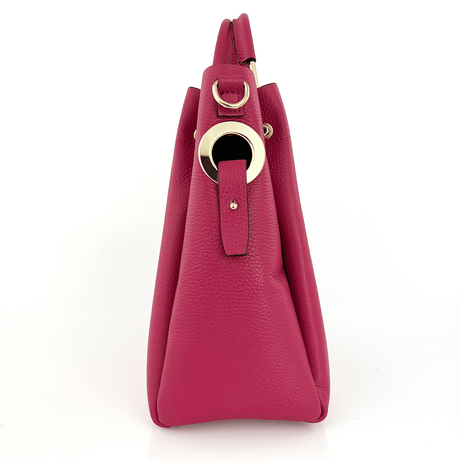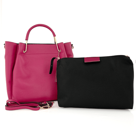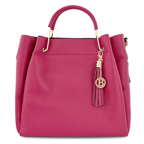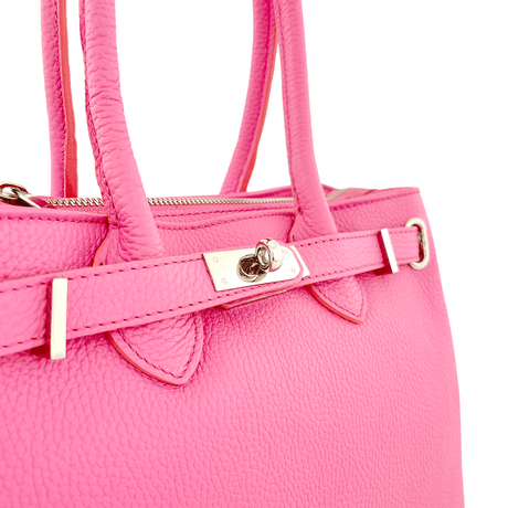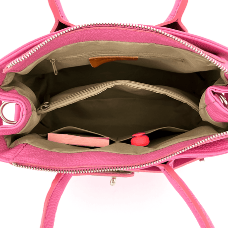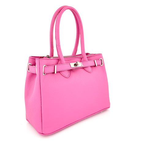 Női táska természetes bőrből, 2 fogantyúval Alba - fukszia/rózsaszín