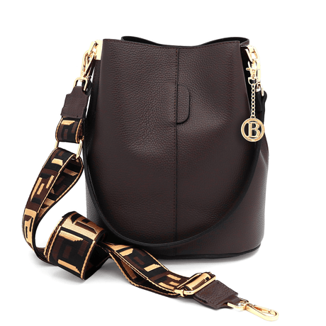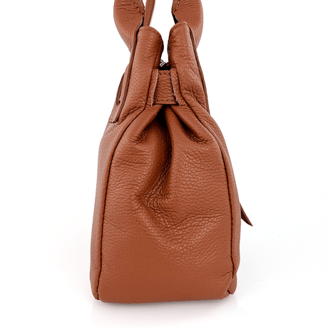 Női táska természetes bőrből, 2 fogantyúval Alba - sötétbarna