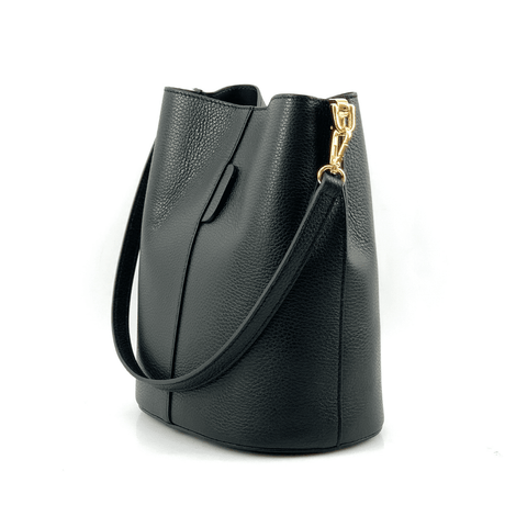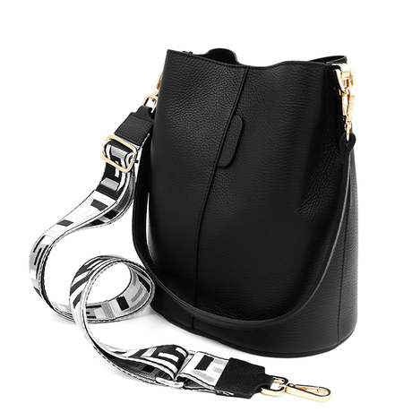Női táska természetes bőrből, 2 fogantyúval Alba - fekete