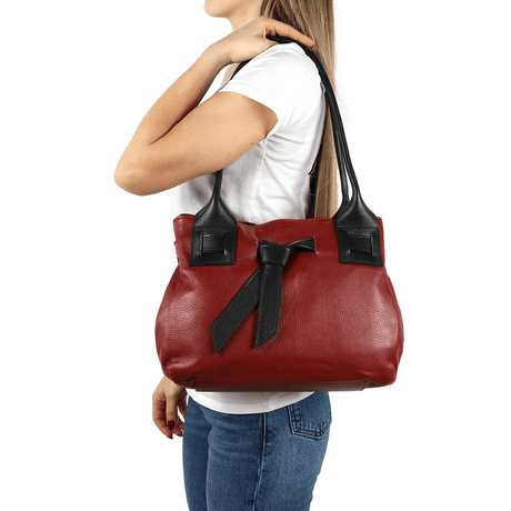 Női táska természetes bőrből, 2 fogantyúval Alba - sötétvörös