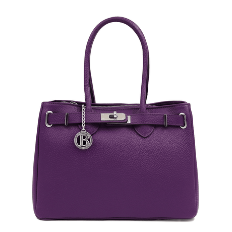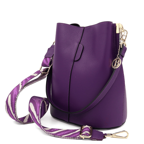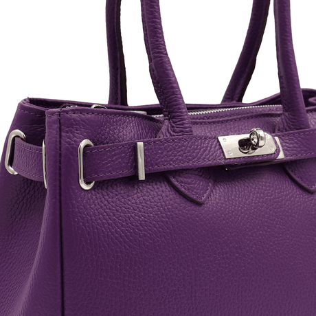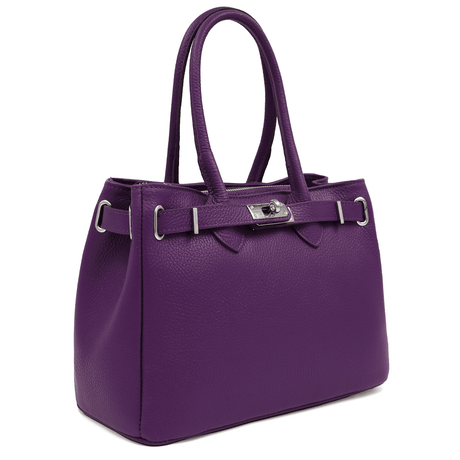 Női táska természetes bőrből, 2 fogantyúval Alba - lila
