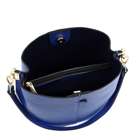 Női táska természetes bőrből, 2 fogantyúval Alba - sötétkék