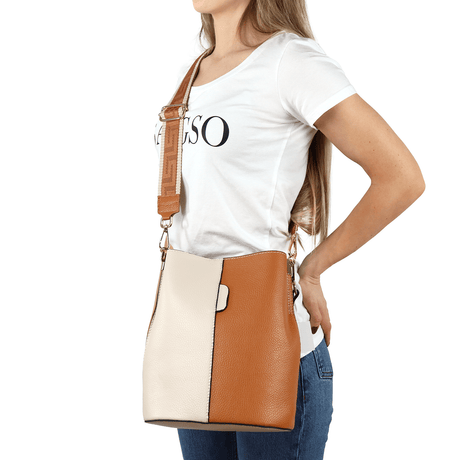 Női táska természetes bőrből, 2 fogantyúval Alba - bézs/téglavörös