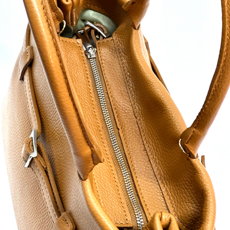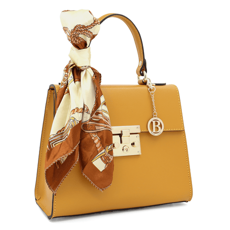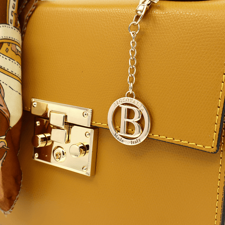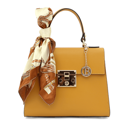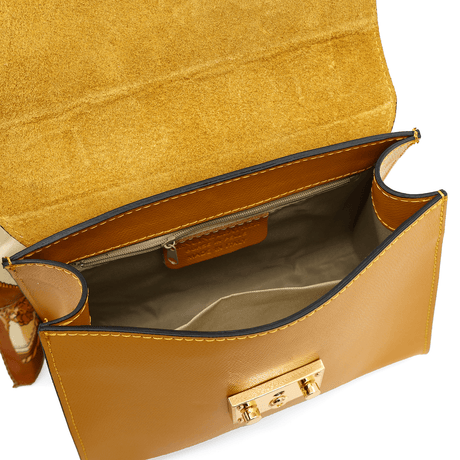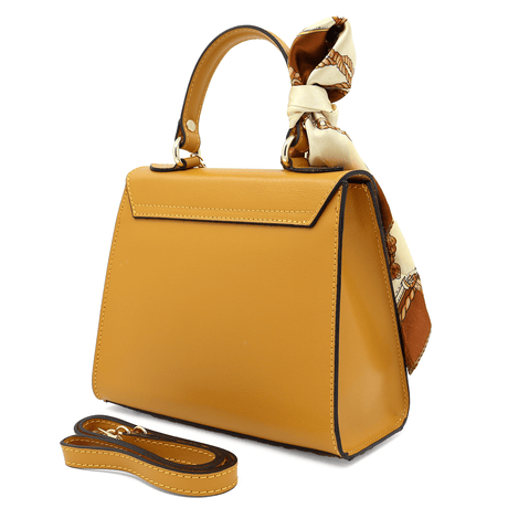 Női táska természetes bőrből, 2 fogantyúval Alba - mustársárga