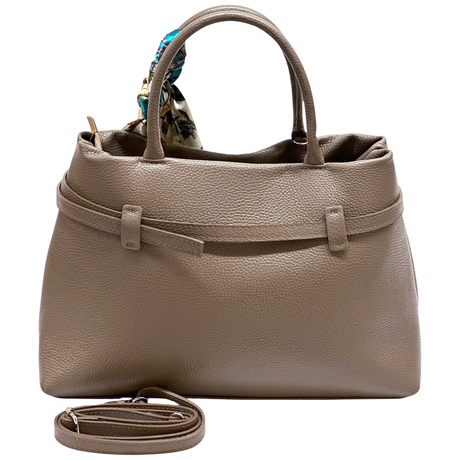 Női táska természetes bőrből, 2 fogantyúval Alba - bézs/világosbarna