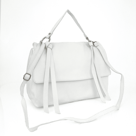 Női táska természetes bőrből, 2 fogantyúval Alba - fehér