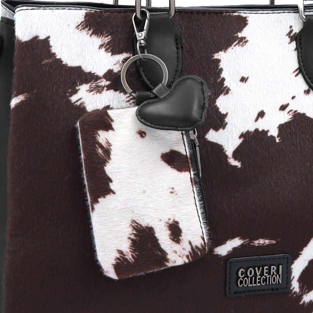Nagy női táska 3 rekesszel és tehénmintával – fekete