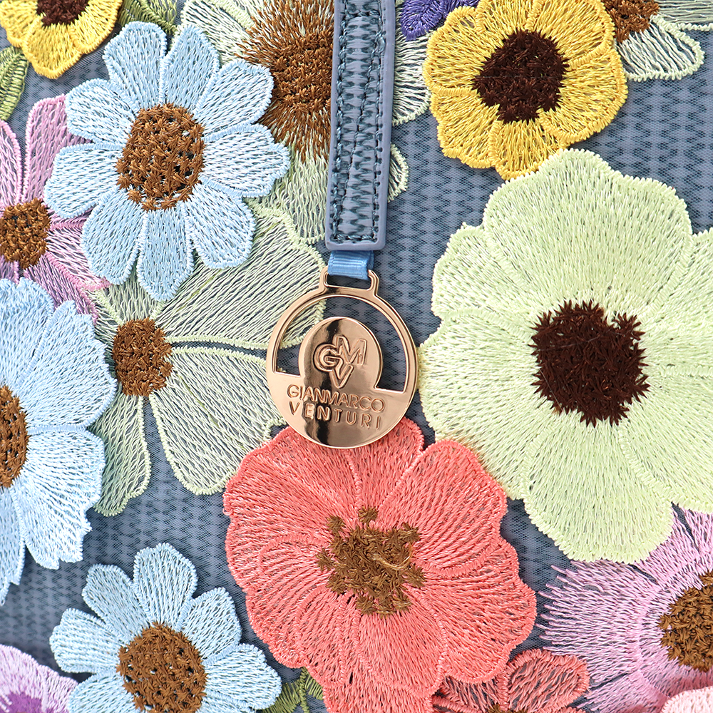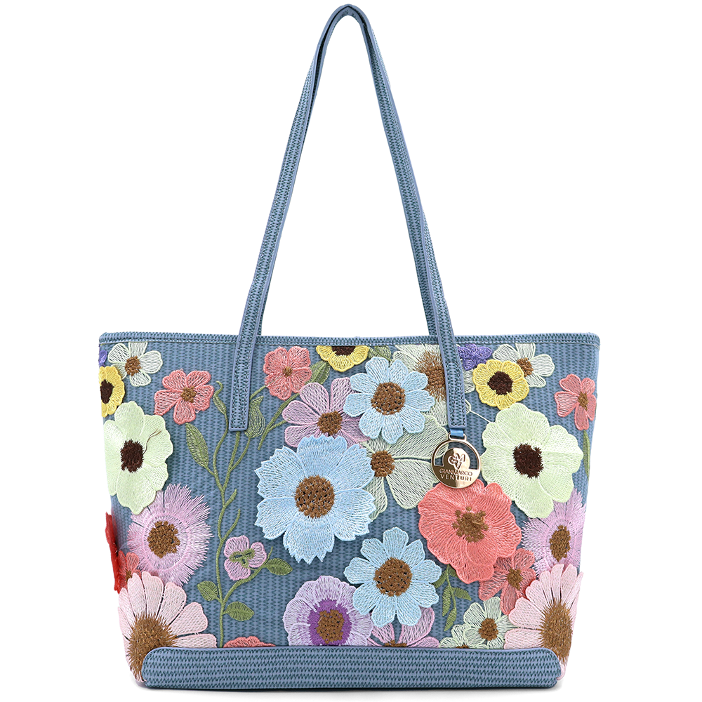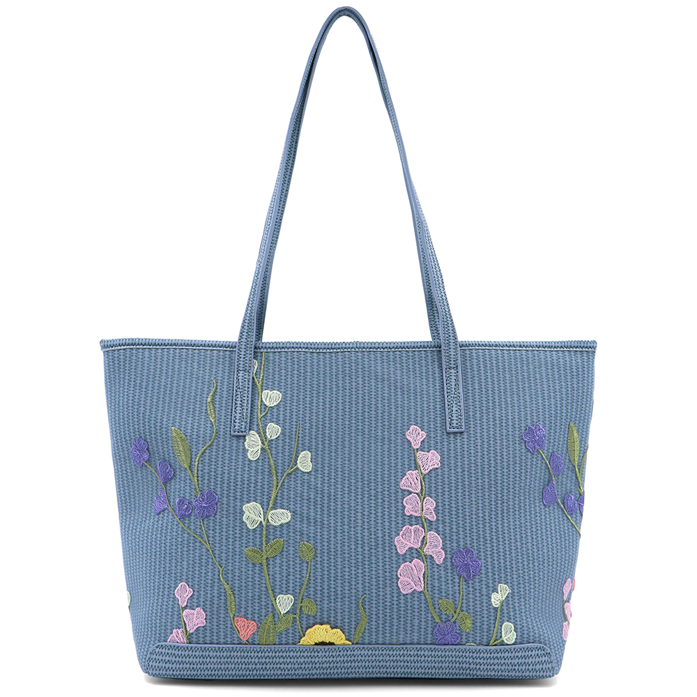 Nagy női táska típusú táska hímzett virágmintával – kék