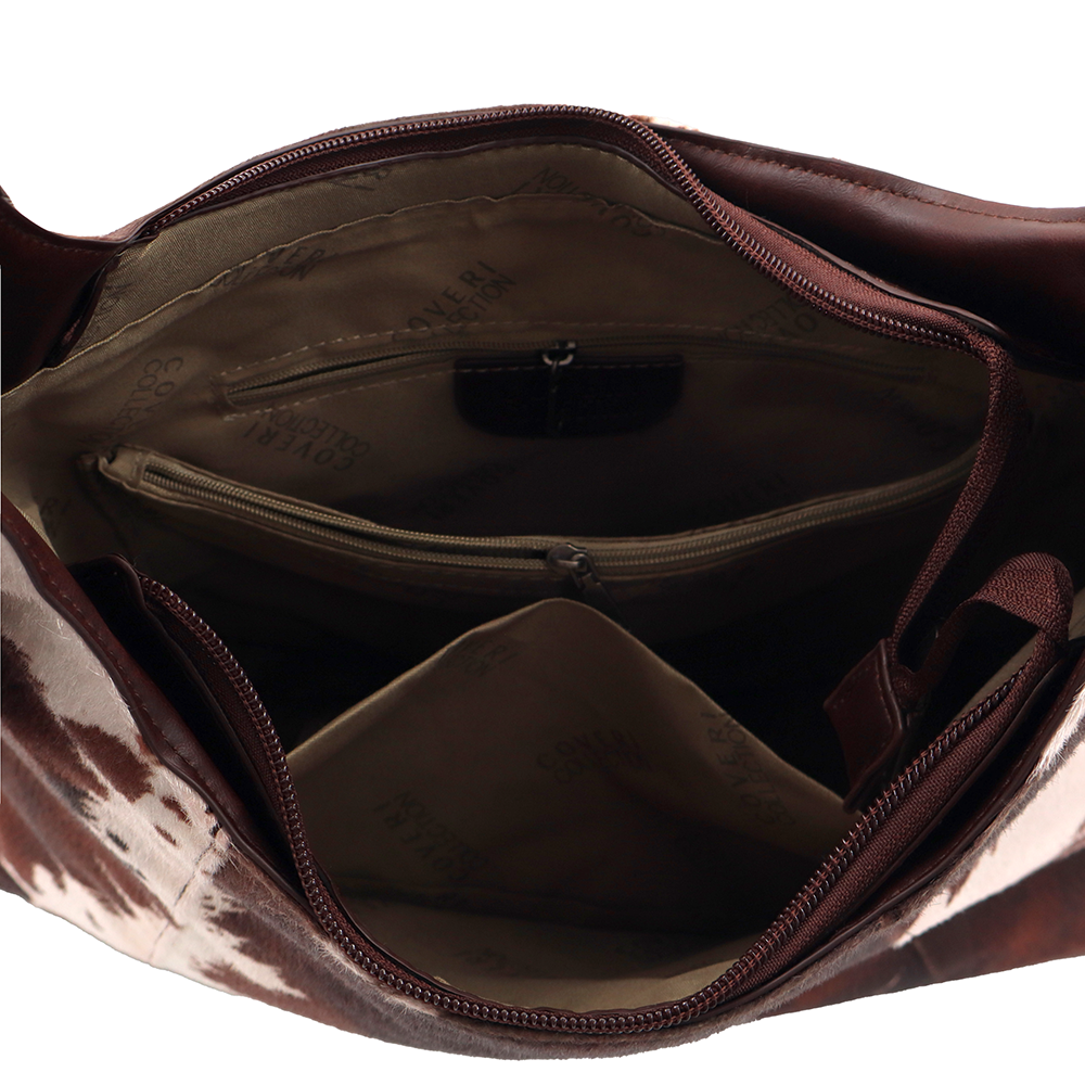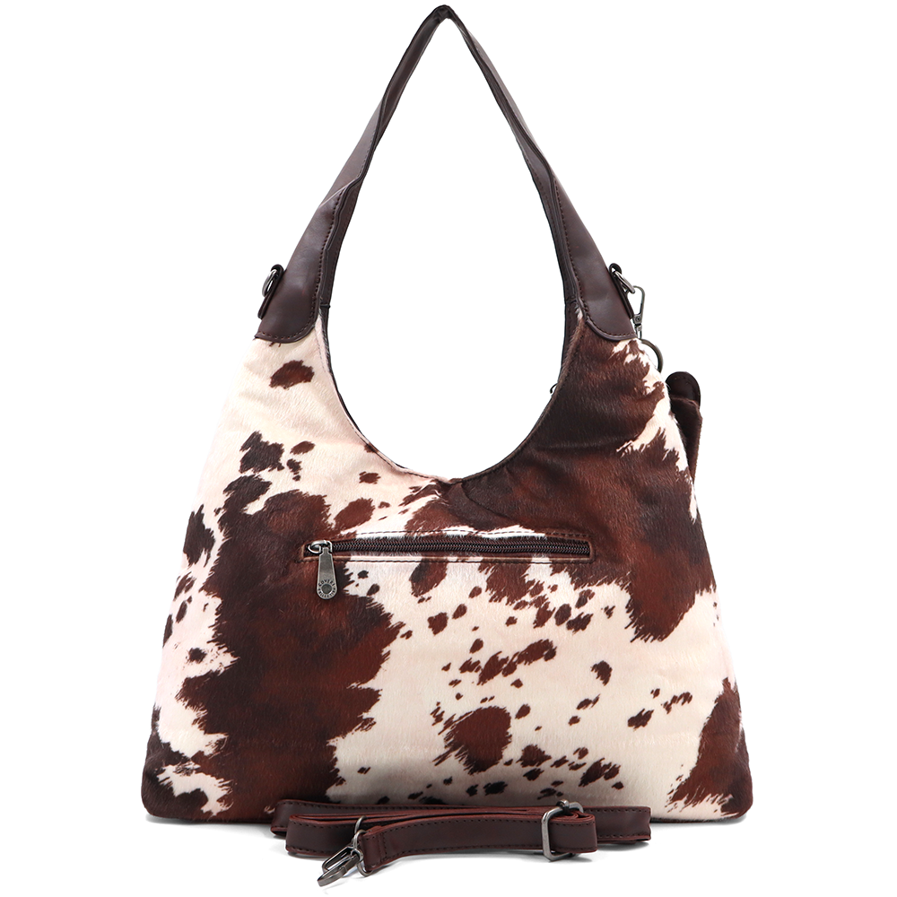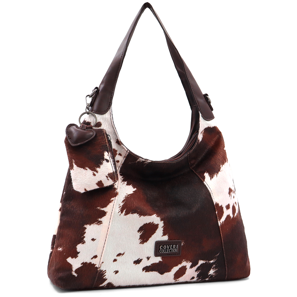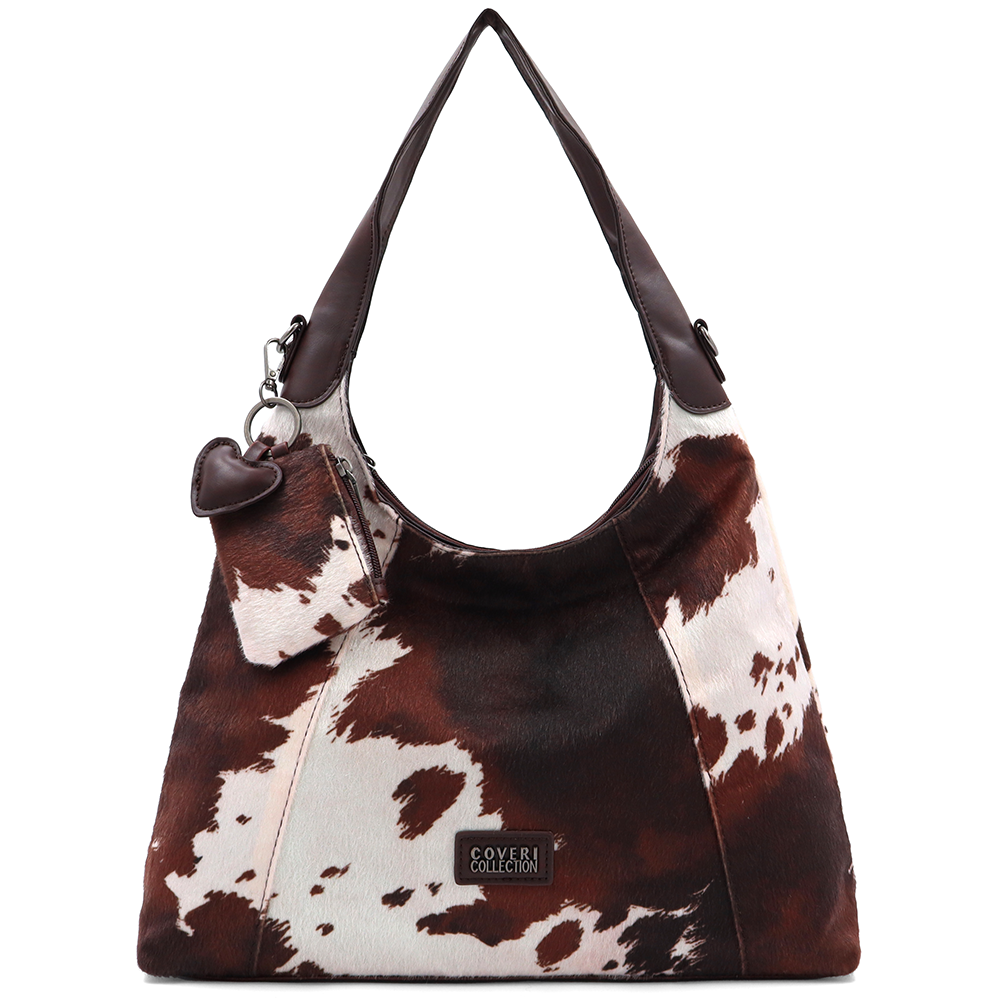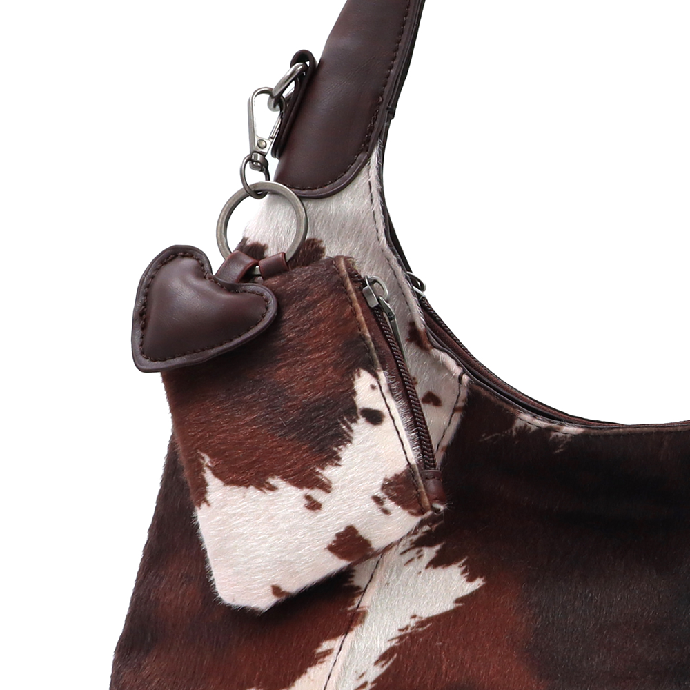 Női táska típusú táska tehénmintás dizájnnal és lógó pénztárcával – barna