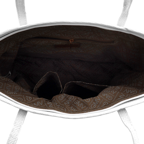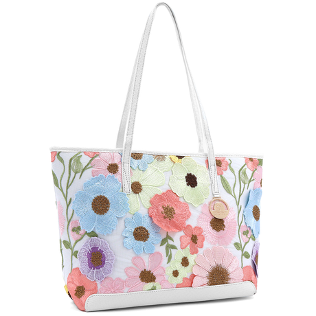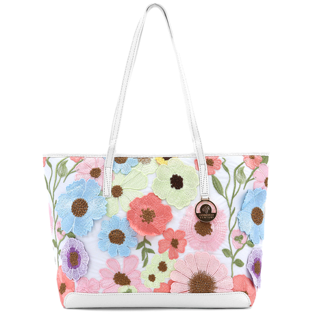 Nagy női táska típusú táska hímzett virágmintával – fehér