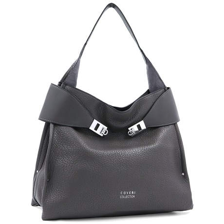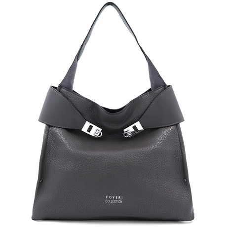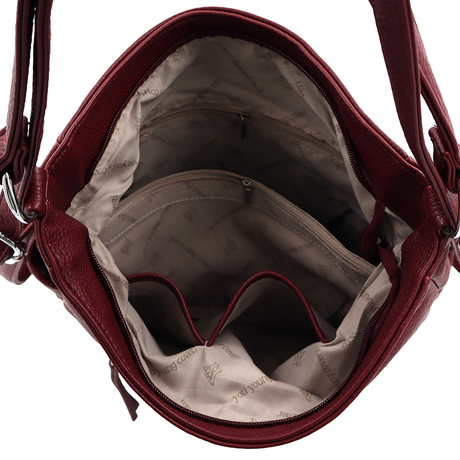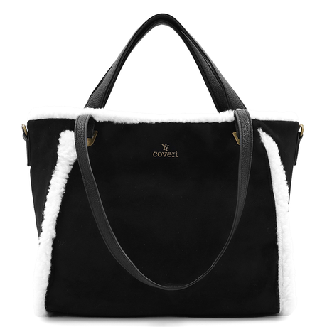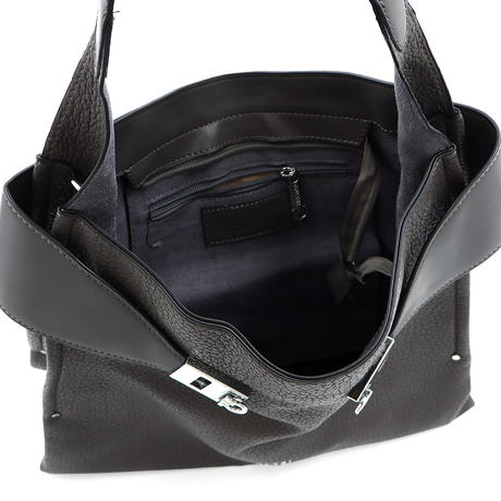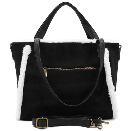 Nagy női táska 3 rekesszel és tehénmintával – fekete