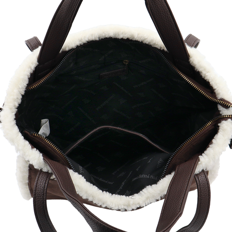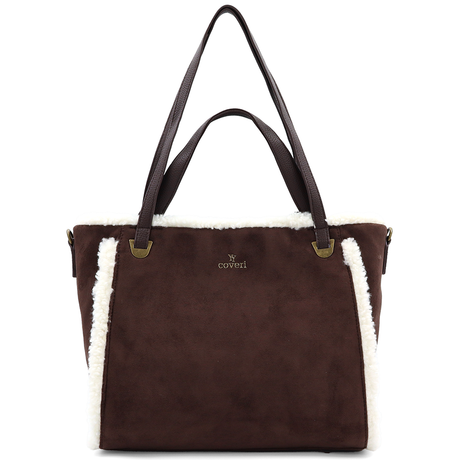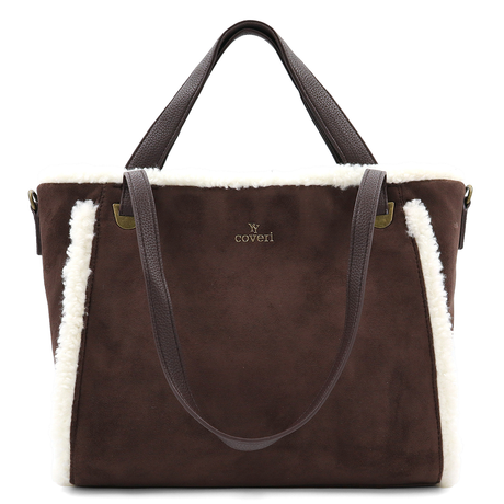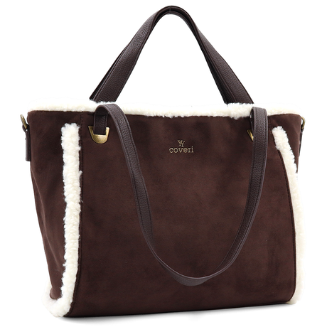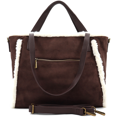 Nagy női táska, zsák típusú, öko szőrből, állati mintával - leopárd/téglaszínű barna