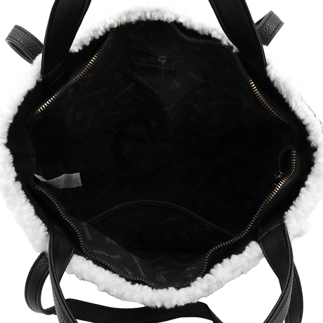 Nagy női táska, zsák típusú, öko szőrből, állati mintával - fehér/fekete
