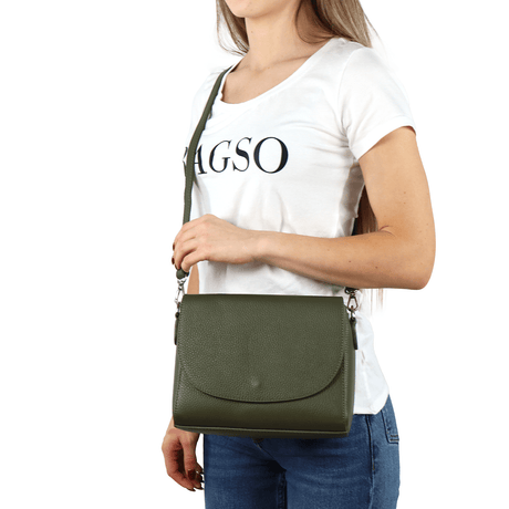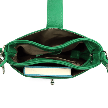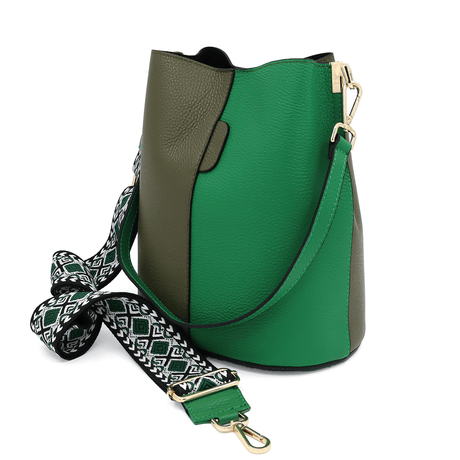 Női táska természetes bőrből, 2 fogantyúval Alba - zöld