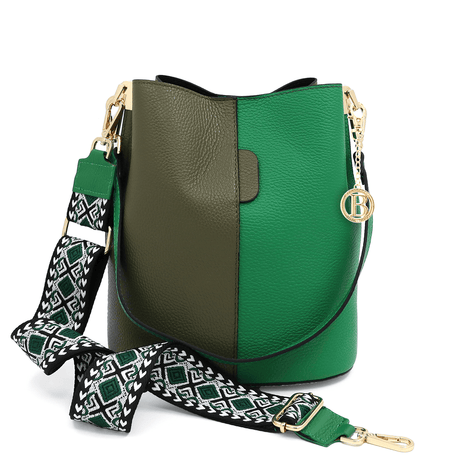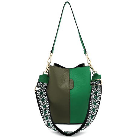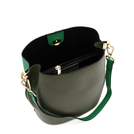 Női táska természetes bőrből, 2 fogantyúval Alba - zöld/sötétzöld