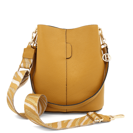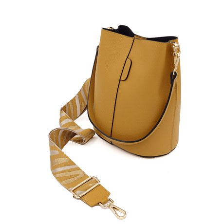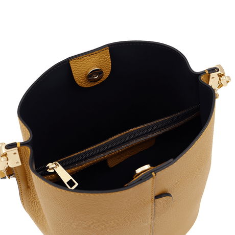 Női táska természetes bőrből, 2 fogantyúval Alba - mustársárga
