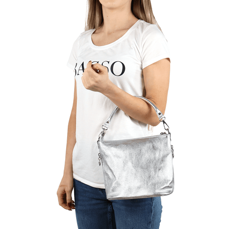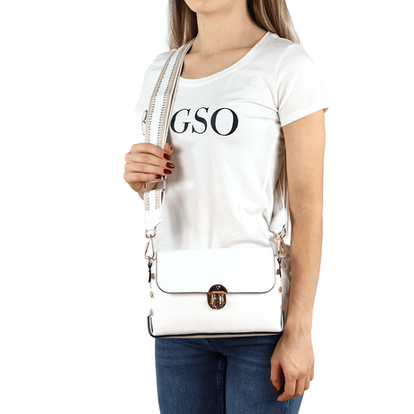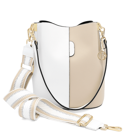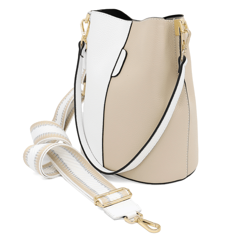 Női táska természetes bőrből, 2 fogantyúval Alba - fehér/bézs