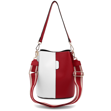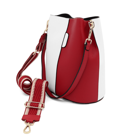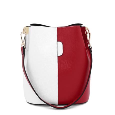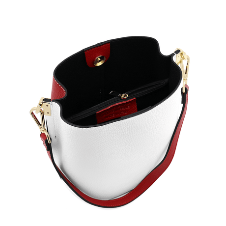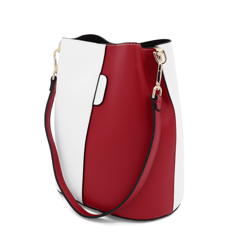 Női táska természetes bőrből, 2 fogantyúval Alba - fehér/piros
