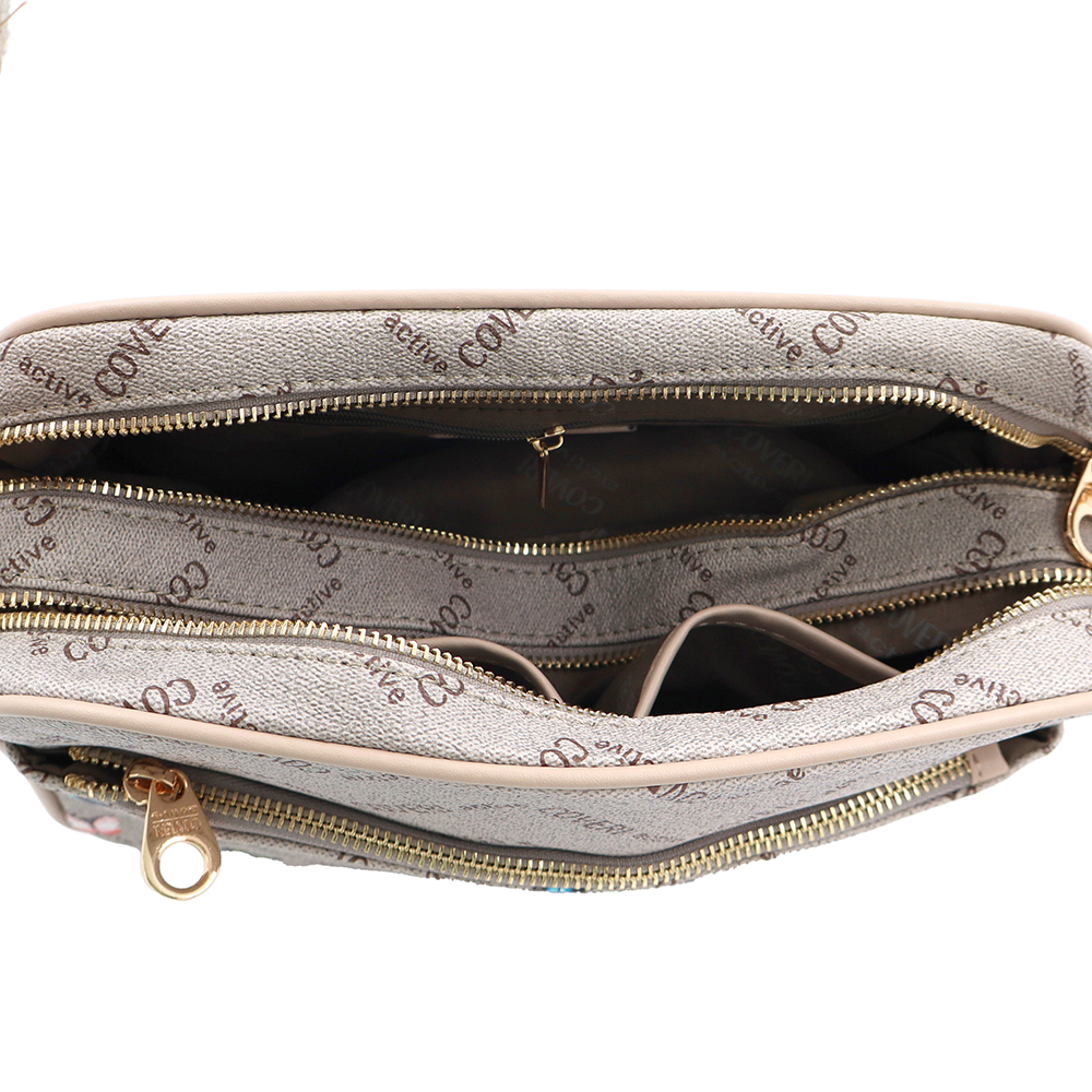 Női válltáska két rekesszel és mintával – világosbarna