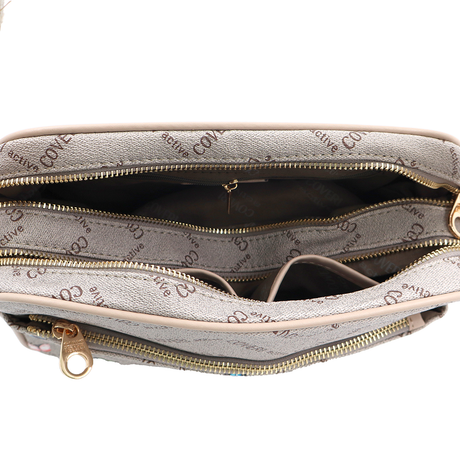 Női válltáska két rekesszel és mintával – bézs