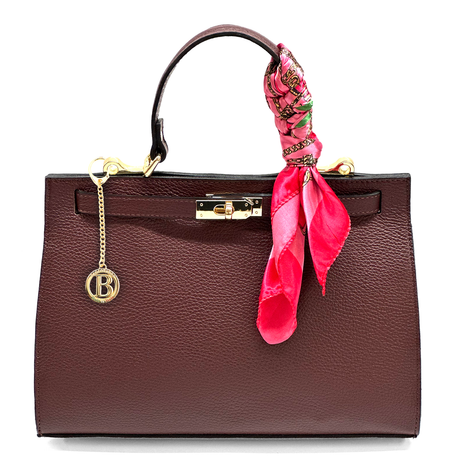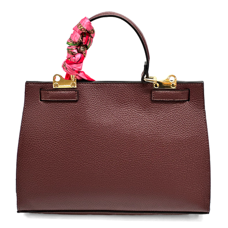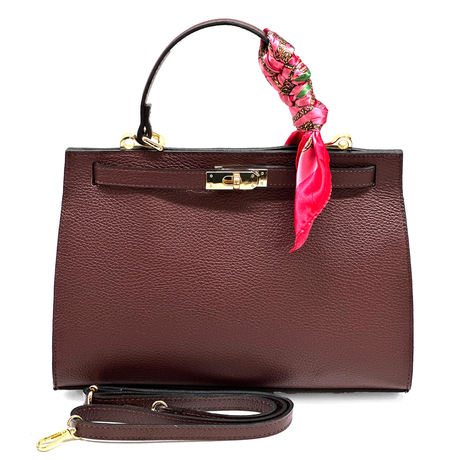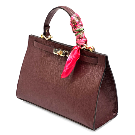 Női táska természetes bőrből sállal – bordó