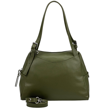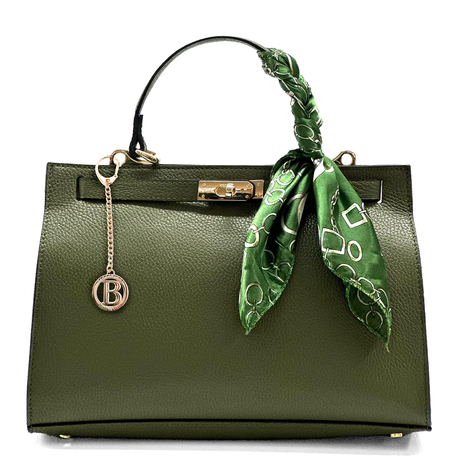 Női táska természetes bőrből sállal – zöld