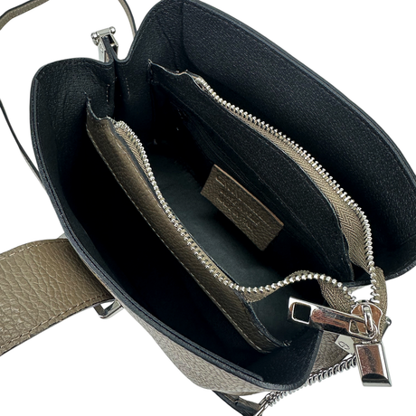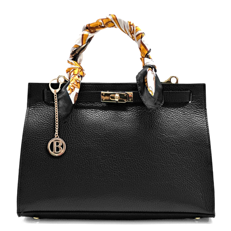 Női táska természetes bőrből sállal – fekete
