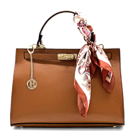 Női táska természetes bőrből sállal – téglabarna