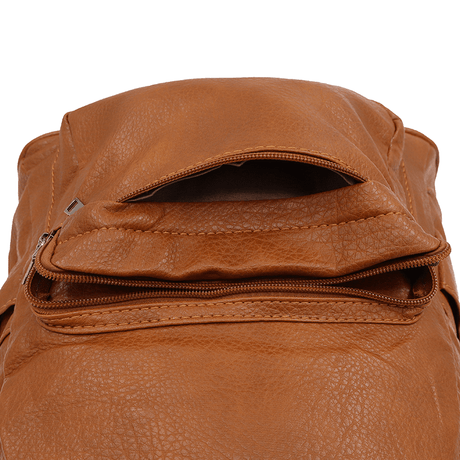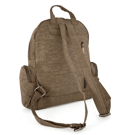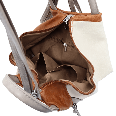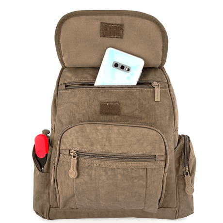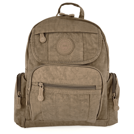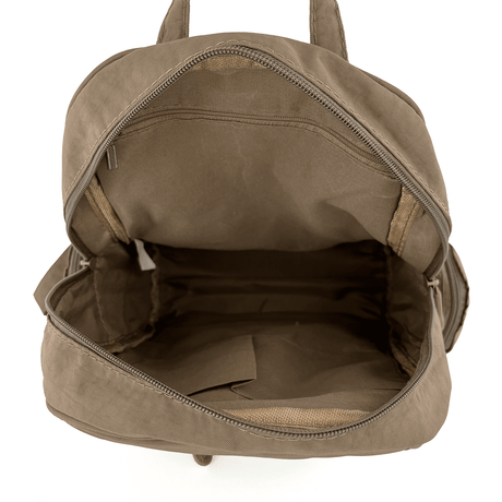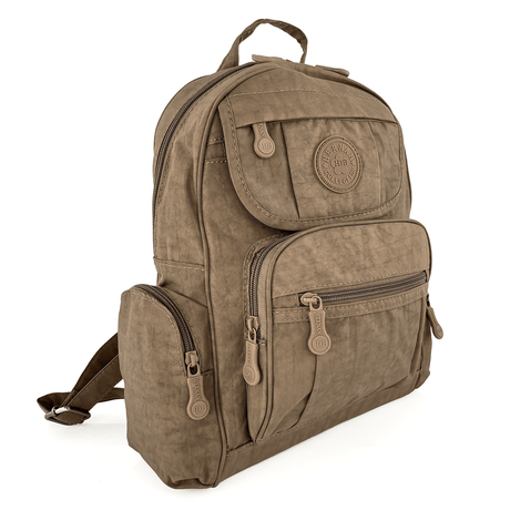 Női hátizsák szövetből, sok zsebbel - világosbarna