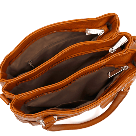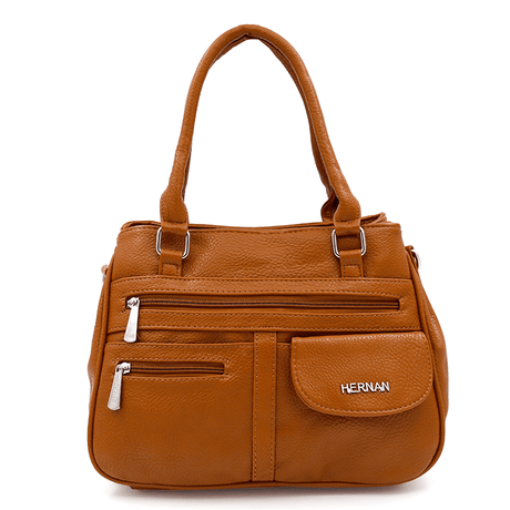 Női táska 3 rekesszel és sok zsebbel - cseréptetőbarna