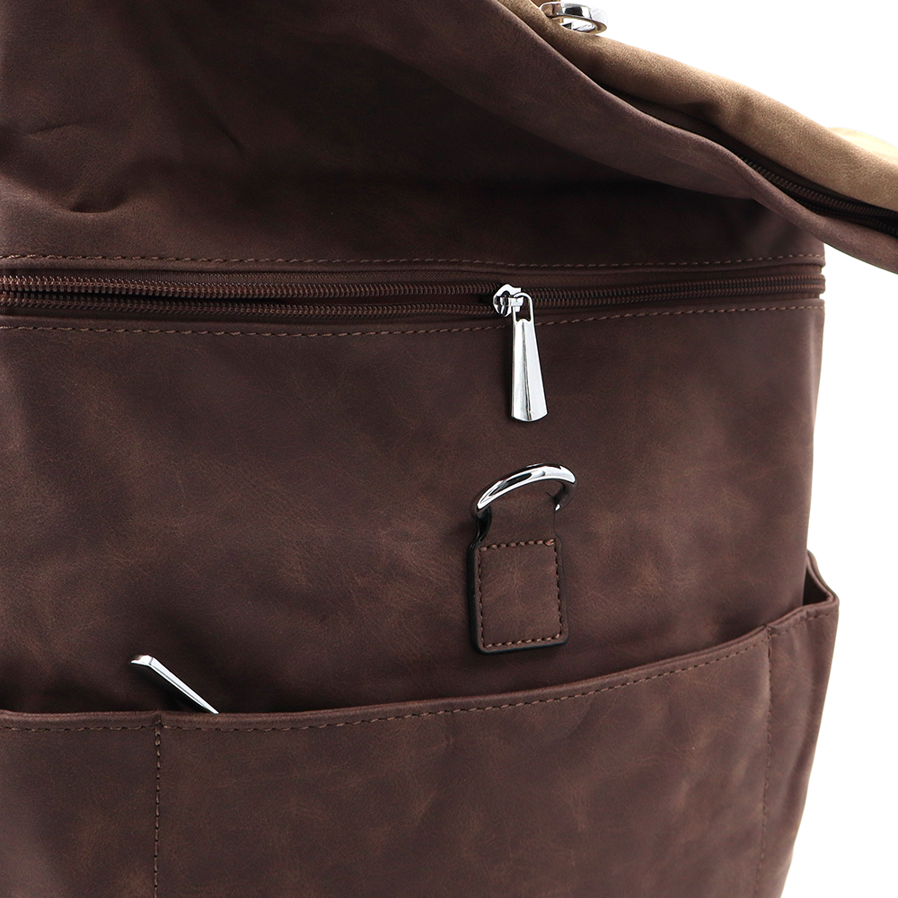 2 az 1-ben – Női hátizsák és táska sok zsebbel – barna