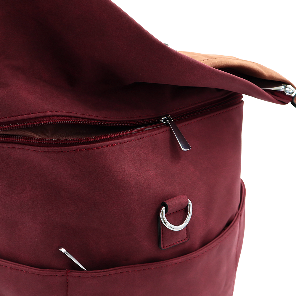 2 az 1-ben – Női hátizsák és táska sok zsebbel – bordó