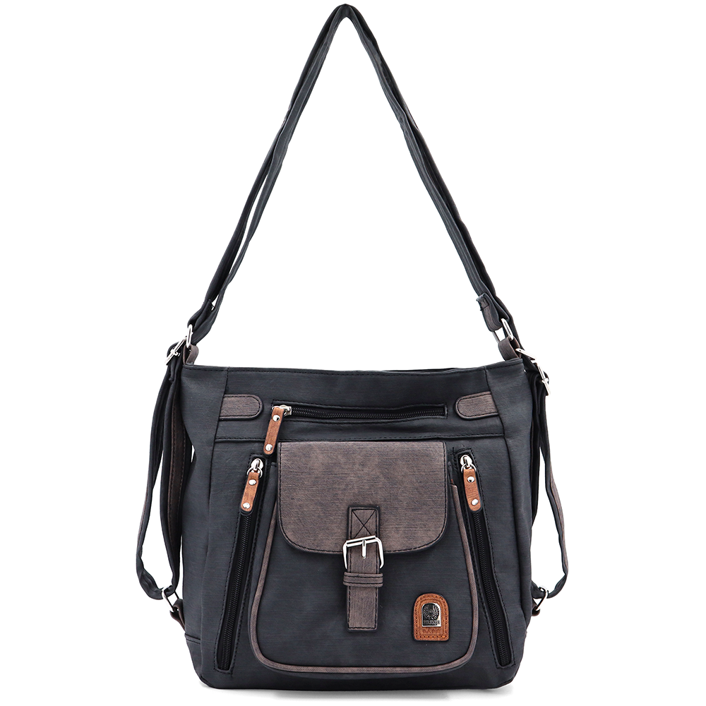 2 az 1-ben – táska és hátizsák sok zsebbel – fekete/világosbarna