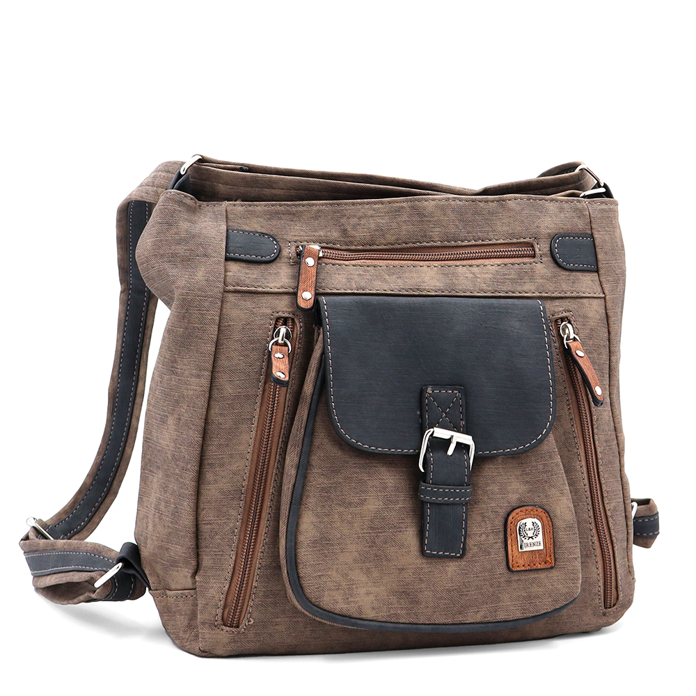 2 az 1-ben – táska és hátizsák sok zsebbel – világosbarna