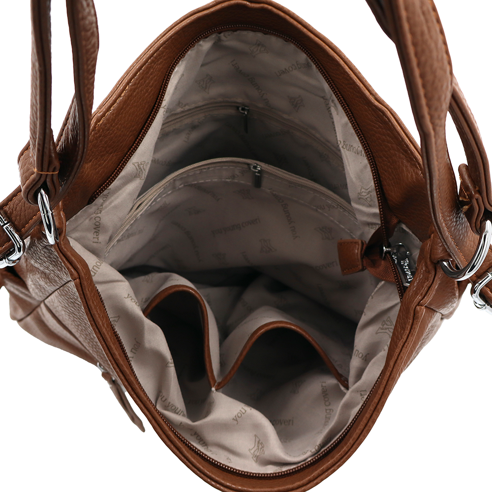 - 1 db nagy belső cipzáras zseb, amely két részre osztja a táskát