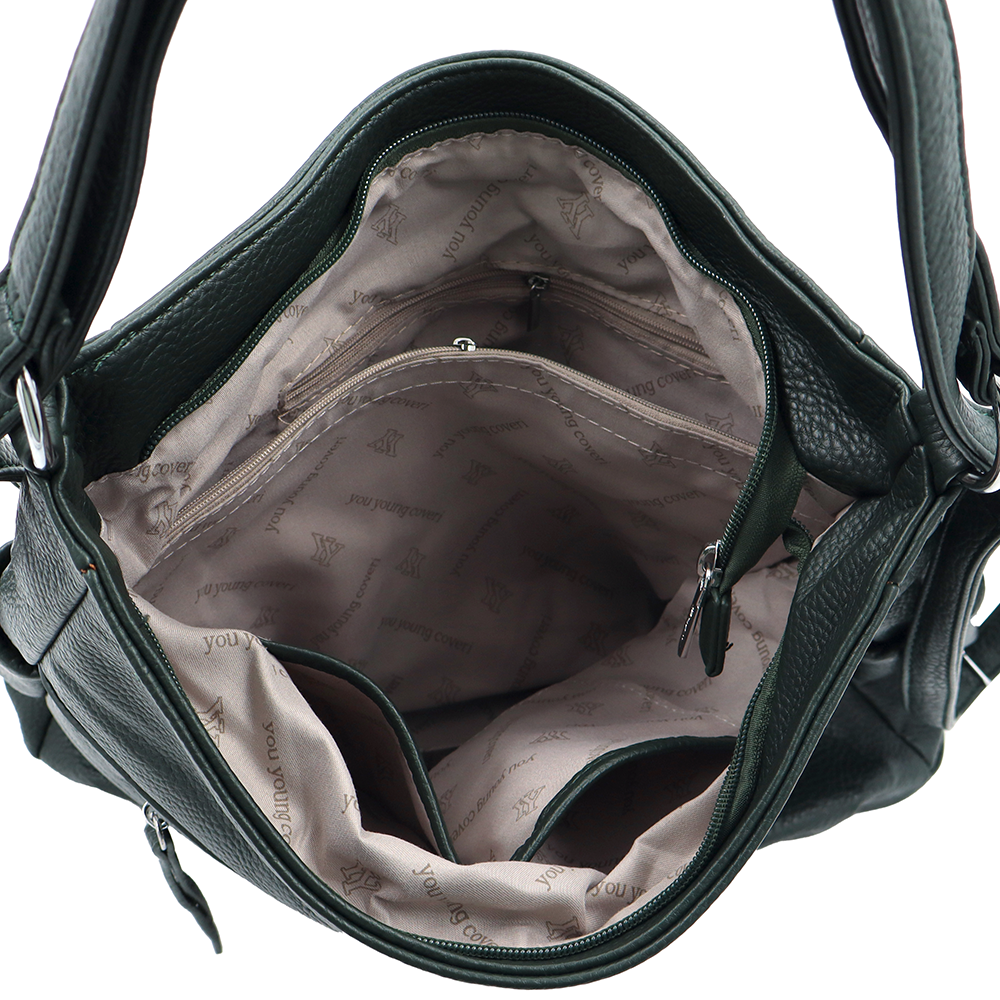 - 1 db nagy belső cipzáras zseb, amely két részre osztja a táskát
