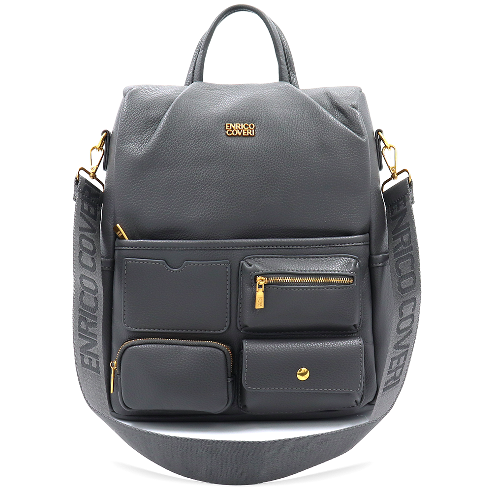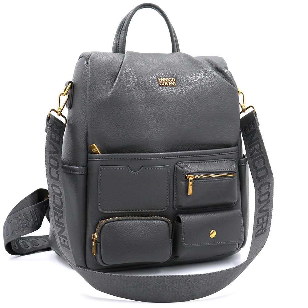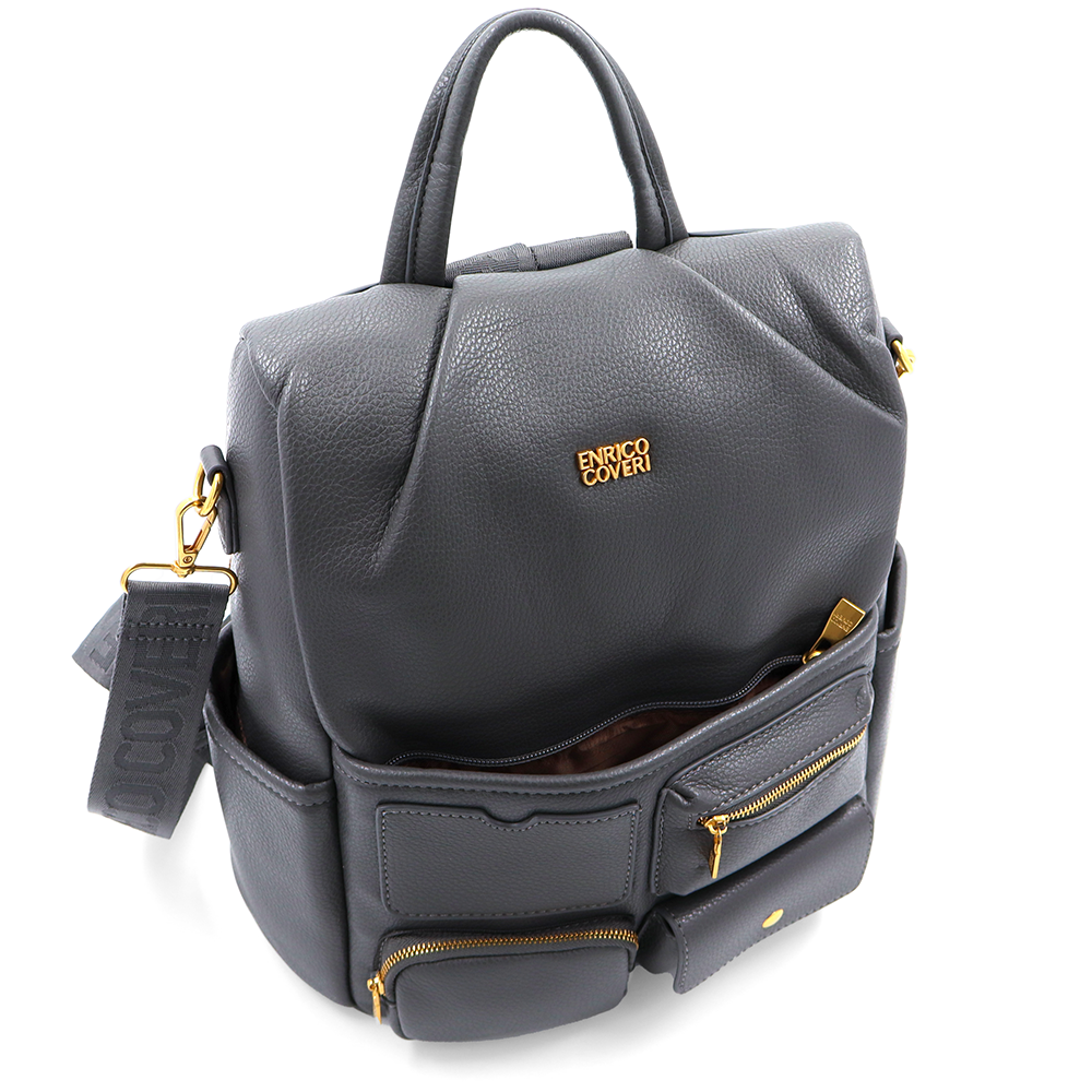 ENRICO COVERI – 2 az 1-ben női hátizsák és táska, titkos záródással és sok zsebbel – szürke
